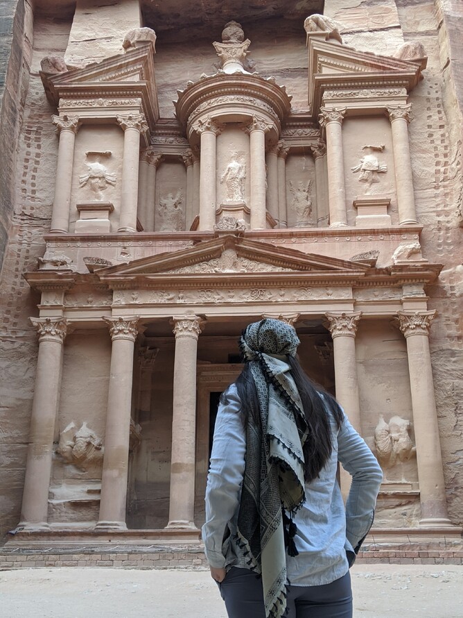 Ashly exploring Petra, Jordan. Photo credit: SPLICE clothing.