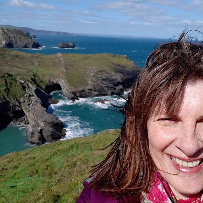 Sue-Anne exploring Tintagel Castle, Cornwall. Photo Credit: Sue-Anne @SisterStay