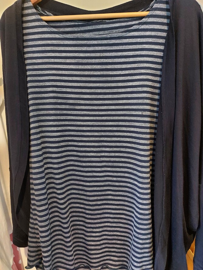 My Merino Country striped tunic top with my Glowing Sky batwing cardigan.