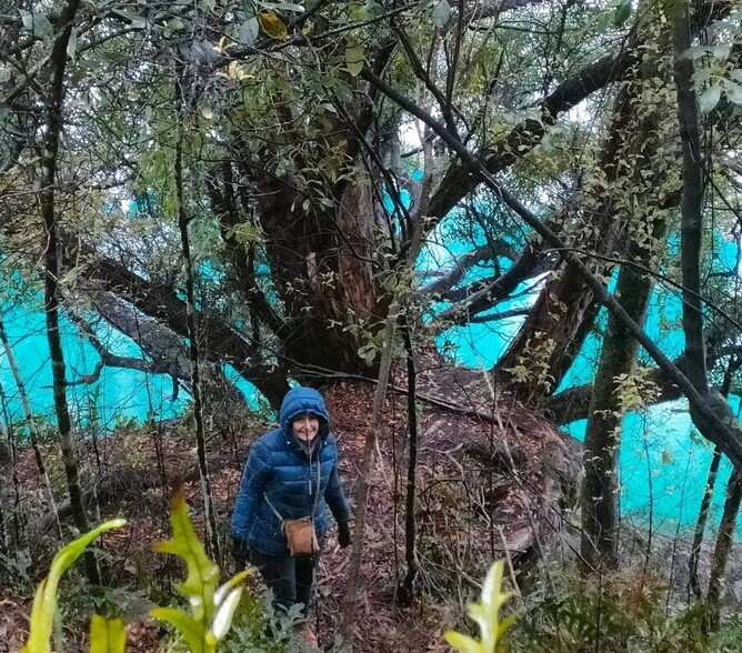 'Scrambling down the bank' gear! The things I do for a pic! Can you believe the colour of that water on such a gloomy day?!