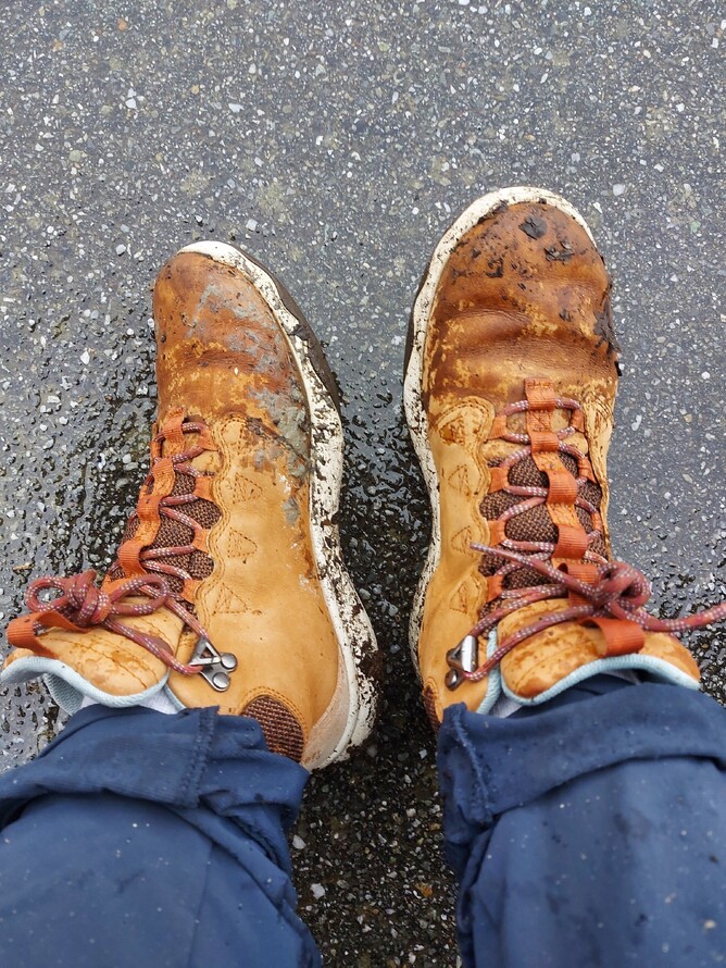 Oops! Pleased I took two pairs of boots. Once dry, these brushed clean.